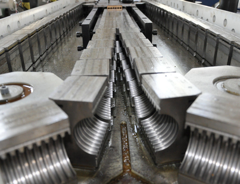 Αυτή η ζαρωμένη γραμμή εξώθησης σωλήνων signle τοίχος περιέχει κυρίως τον εξωθητή, που ζαρώνουν διαμορφώνοντας τους φραγμούς μηχανών, κεφαλιών κύβων και φορμών, δροσίζοντας εξοπλισμός, μετρώντας μηχανή και άνεμος η μηχανή. Μπορεί συνεχώς να παραγάγει πολλά είδη διαμέτρου που ο ενιαίος τοίχος ζάρωσε τους σωλήνες.