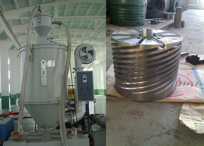 Ακατέργαστο material+master που → η κενή σίτιση → υλική ξηρότητα → ενιαίος co-extrusion καλαθιών εξωθητών βιδών → ψεκασμός διακριβωτών → φορμών → κενή ζώνη δεξαμενών → δροσίζοντας νερού ψεκασμού δεξαμενών → βαθμολόγησης έλξη-από τον ενιαίο άνεμος κύλινδρο κουρδιστηριών → εξωθητών → κόλλας βιδών → που διαμορφώνει πιό δροσερό ολοκληρωμένων προϊόντων ραφιών → σωλήνων → νερού →