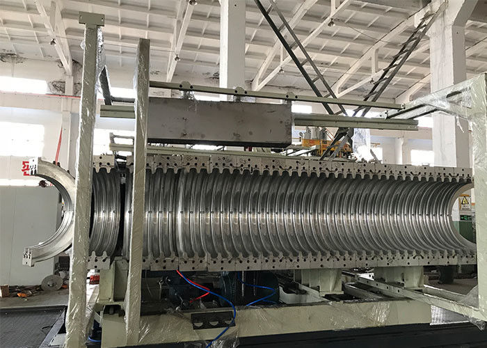 Η οριζόντια water-cooled διπλοτειχισμένη ζαρωμένη γραμμή παραγωγής σωλήνων μηχανημάτων Huasu/η οριζόντια water-cooled διπλοτειχισμένη ζαρωμένη μηχανή Huasu εξοπλισμού σωλήνων οριζόντια παράγει κυρίως το PE (πολυαιθυλένιο) και τους ζαρωμένους σωλήνες PP (πολυπροπυλένιο), οι οποίοι αποτελούνται από τον εξωθητή, τον κύβο εξώθησης, τη φορμάροντας μηχανή, τη δεξαμενή ψεκασμού, έλξη-από τη μηχανή, την τέμνουσα μηχανή, το στοιβαχτή, το ηλεκτρικό σύστημα ελέγχου, κ.λπ. κατάλληλους για OD40 - προδιαγραφή OD1500, σταθερή λειτουργία χρησιμοποίηση της ψύξης κυκλοφορίας νερού πίεσης, γρήγορη ταχύτητα παραγωγής. Το κέντρο έχει το χαμηλό ύψος, την κατάλληλη λειτουργία και τη συντήρηση, και την υψηλή αξιοπιστία.