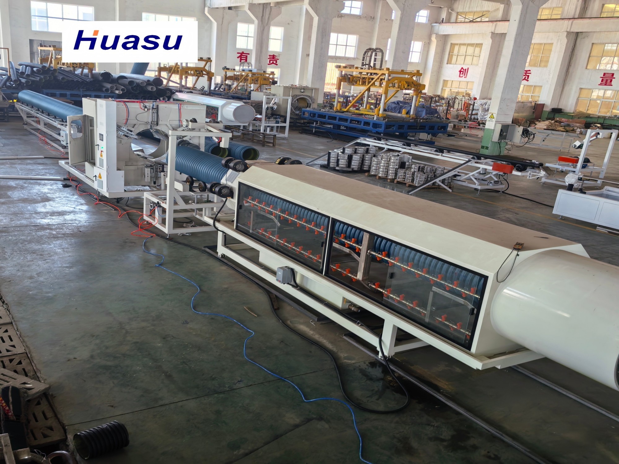 Η κυματοειδής γραμμή σωλήνων είναι η 3η γενιά του βελτιωμένου προϊόντος της Shandong HUASU.Η απόδοση του εξορυκτή και η ταχύτητα παραγωγής του σωλήνα αυξάνονται σημαντικά κατά 20-40% σε σύγκριση με το προηγούμενο προϊόν.
