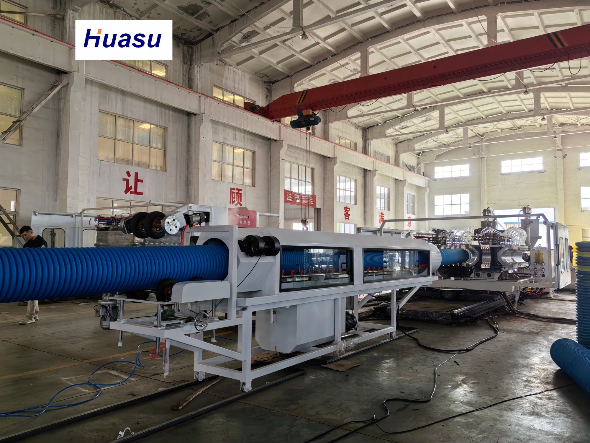 Η γραμμή κυματοειδούς σωλήνα είναι η 3η γενιά του βελτιωμένου προϊόντος της Shandong HUASU. Η απόδοση του εξωθητήρα και η ταχύτητα παραγωγής του σωλήνα αυξάνονται σημαντικά κατά 20-40% σε σύγκριση με το προηγούμενο προϊόν.