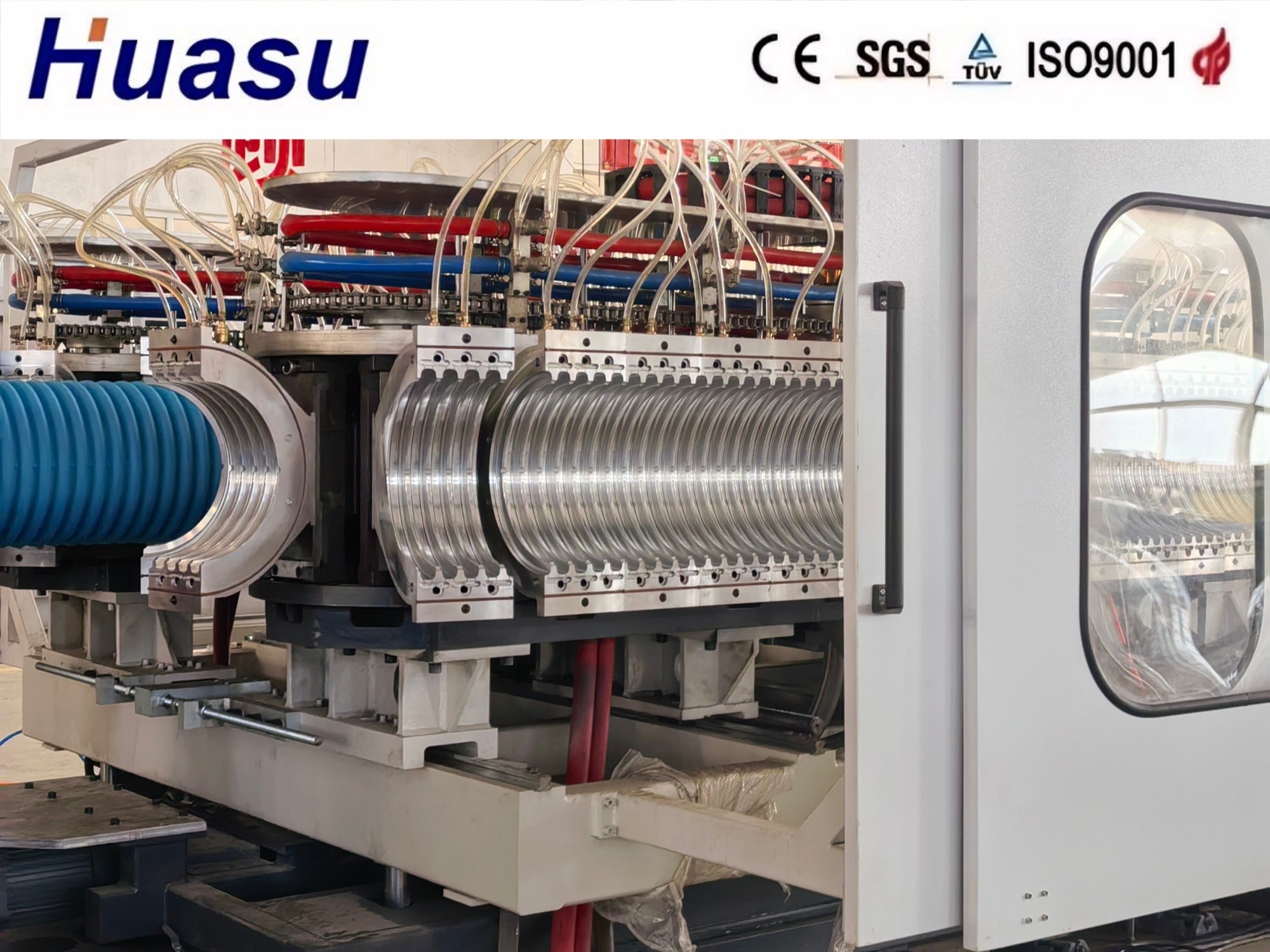 Η διπλή τοιχοποιημένη κυματοειδή γραμμή σωλήνων αντιπροσωπεύει την 3η γενιά βελτιωμένων προϊόντων από την Shandong HUASU.η απόδοση της εξορμούσας και η ταχύτητα παραγωγής σωλήνων αυξάνονται σημαντικά κατά 20-40%.