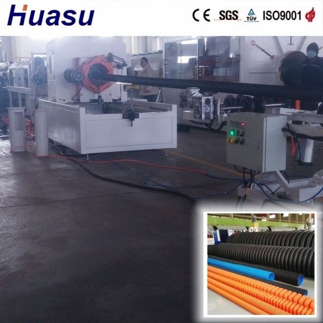 Η διπλή τοιχοποιημένη κυματοειδή γραμμή σωλήνων αντιπροσωπεύει την 3η γενιά βελτιωμένων προϊόντων από την Shandong HUASU,που διαθέτουν αύξηση της απόδοσης της εκτόξευσης και της ταχύτητας παραγωγής κατά 20-40% σε σύγκριση με τα προηγούμενα μοντέλαΤο σύστημα αυτό επιτρέπει την ηλεκτρονική ακουστική για να εξασφαλιστεί η βέλτιστη απόδοση των τελικών προϊόντων κυματοειδών σωλήνων.Χρησιμοποιεί το σύστημα ελέγχου Siemens PLC.